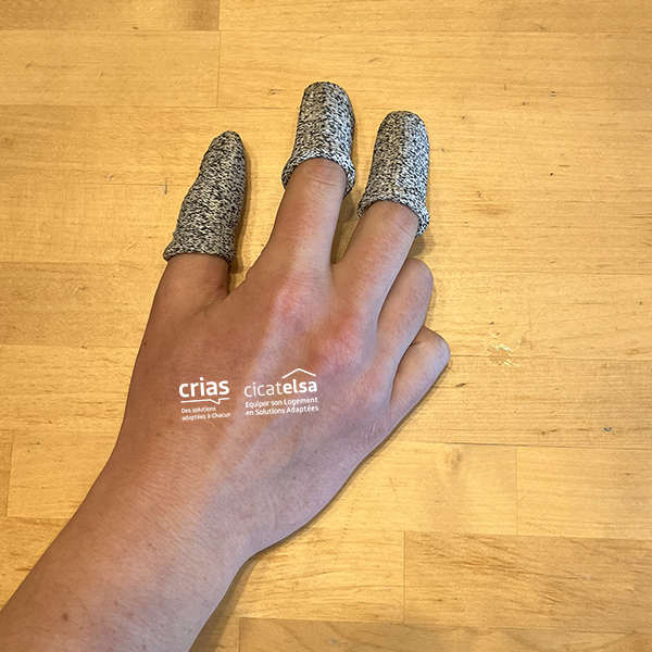 Dispositifs en acier ou en tissu renforcé permettant de sécuriser la découpe des aliments en cuisine en protégeant les doigts de toute coupure.